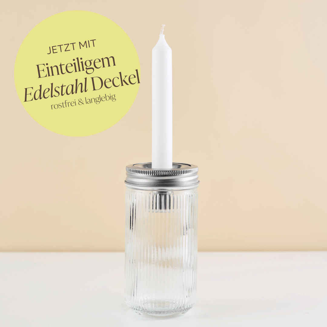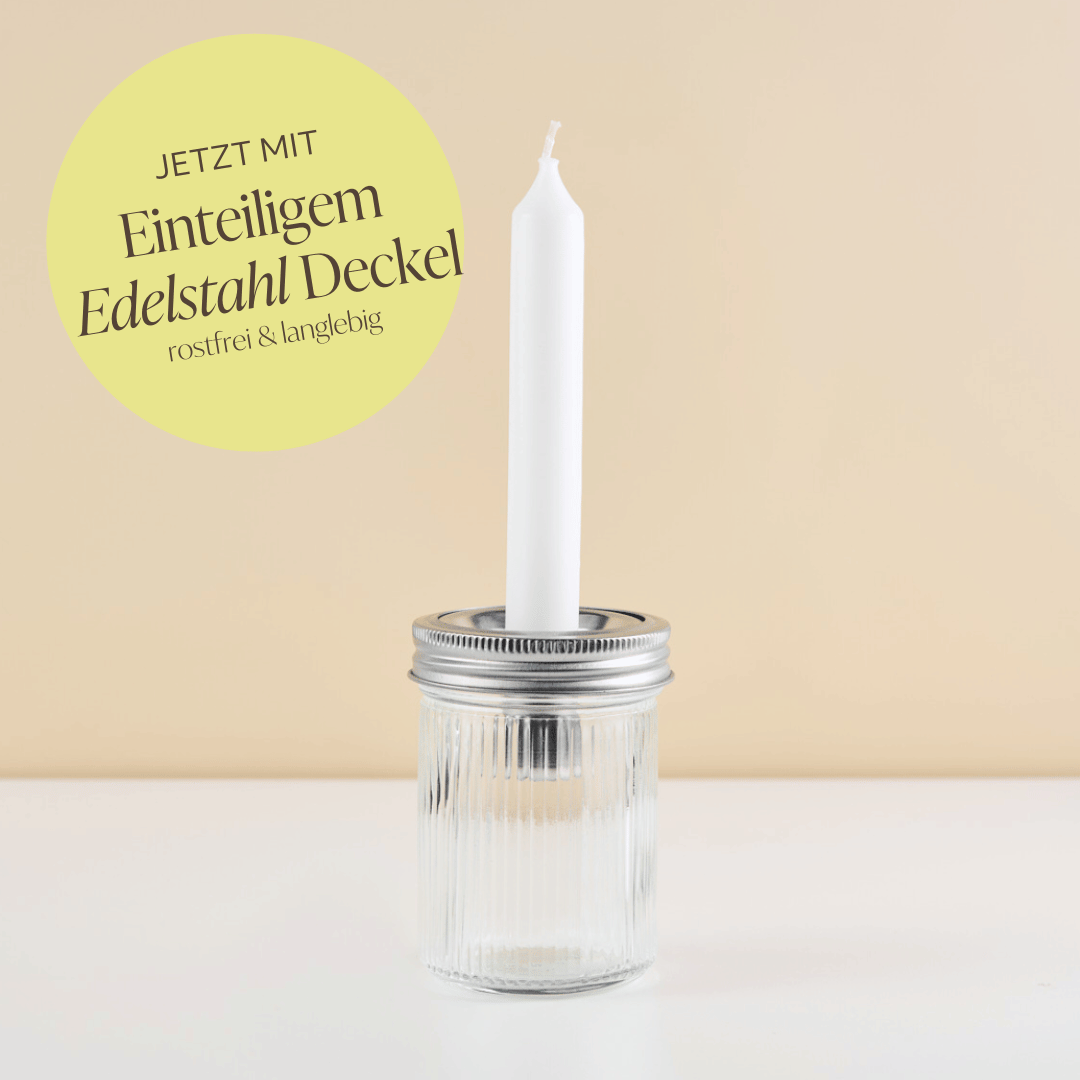 Ab sofort liefern wir unsere Gläser mit hochwertigen, langlebigen und einteiligen Edelstahl-Deckeln anstelle der bisherigen zweiteiligen Weißblech-Deckel. So bekommst du automatisch ein noch besseres Produkt – ganz ohne Aufpreis.