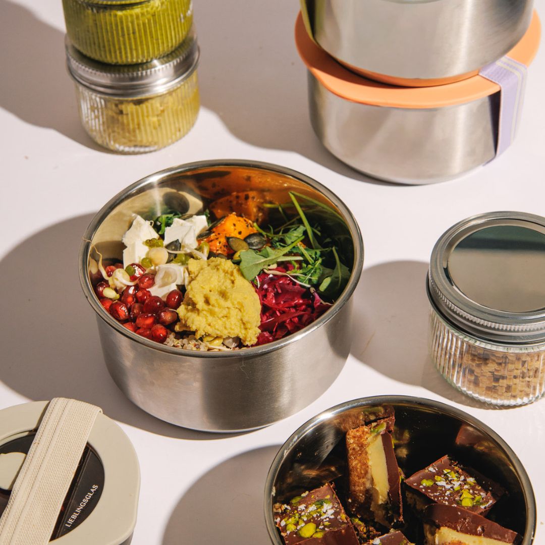 Mit den richtigen Tools wird Meal Prep noch einfacher: Unsere Edelstahldosen sind frei von Schadstoffen, geschmacksneutral und besonders langlebig. Deine vorbereiteten Mahlzeiten bleiben frisch, sicher und praktisch aufbewahrt. In Kombination mit unseren To Go Straps, Schneidebrettern und Sprossendeckeln machst du aus Meal Prep eine stressfreie Routine, die dich jeden Tag begleitet.