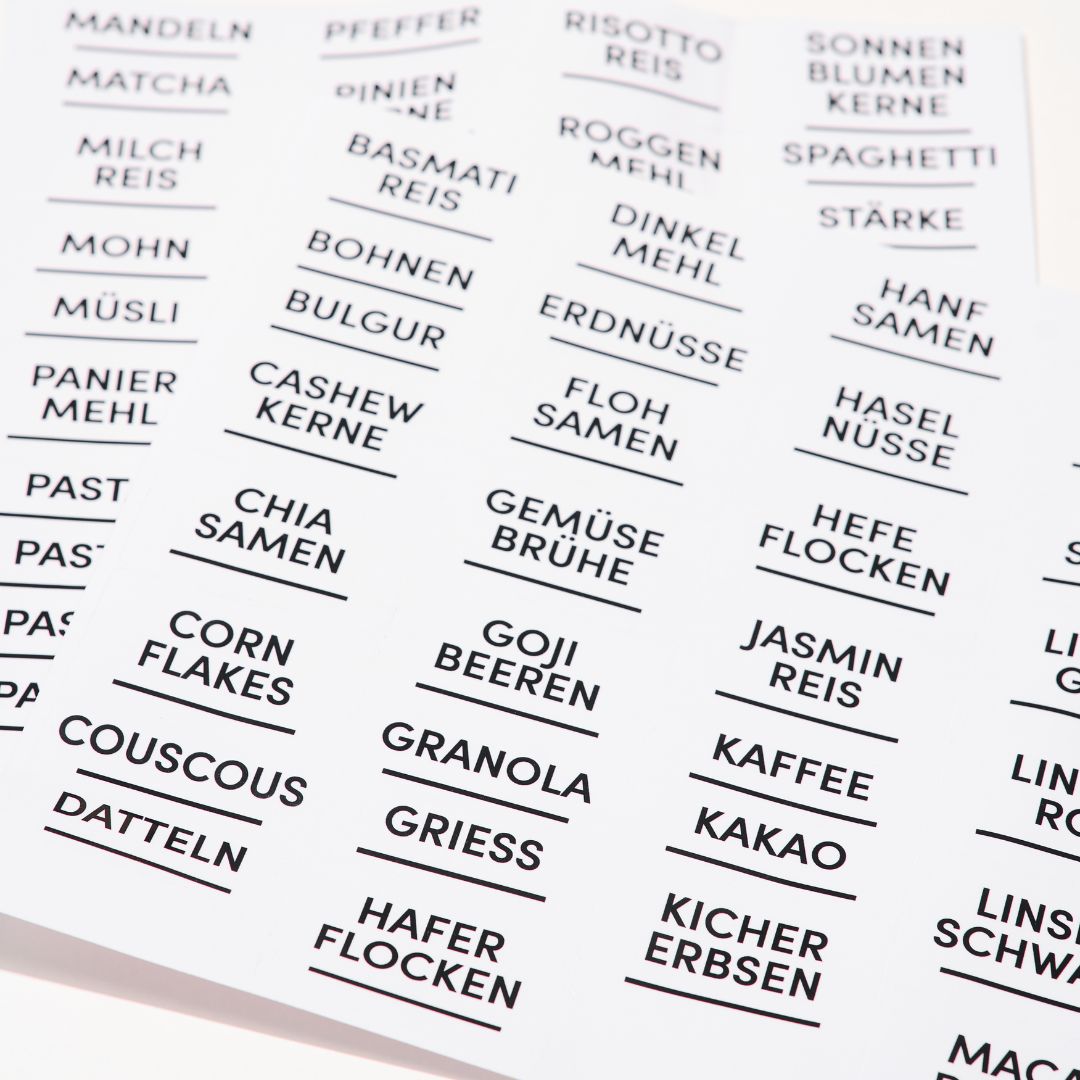 Bei unseren Etiketten kannst du zwischen handwritten, minimal, clean und den zum Selbstbeschriften wählen.