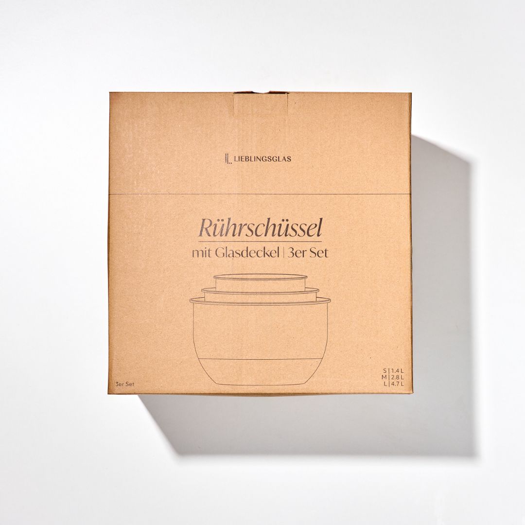 3er Set Rührschüsseln mit Skala, rutschfestem Boden & Glasdeckel – ineinander stapelbar & flexibel für jede Küchensituation