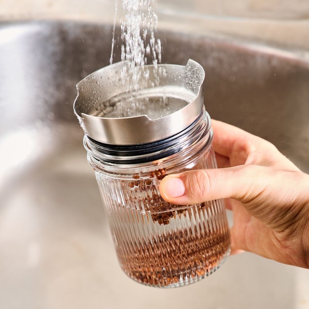 Sprossen lassen sich ganz einfach im Glas ziehen. Mit unserem Sprossendeckel aus Edelstahl verwandelst du dein Wide Mason Jar im Handumdrehen in ein praktisches Keimglas für Zuhause. Der Deckel ist langlebig, nachhaltig und BPA-frei – perfekt für alle, die Wert auf gesunde Ernährung und plastikfreie Alternativen legen.