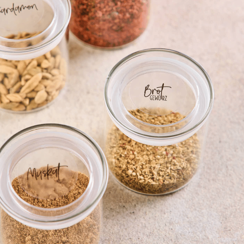 Rundum ordentlich & stylisch – das Gewürzschrank Starter Set | Rund mit Glasdeckel-Upgrade