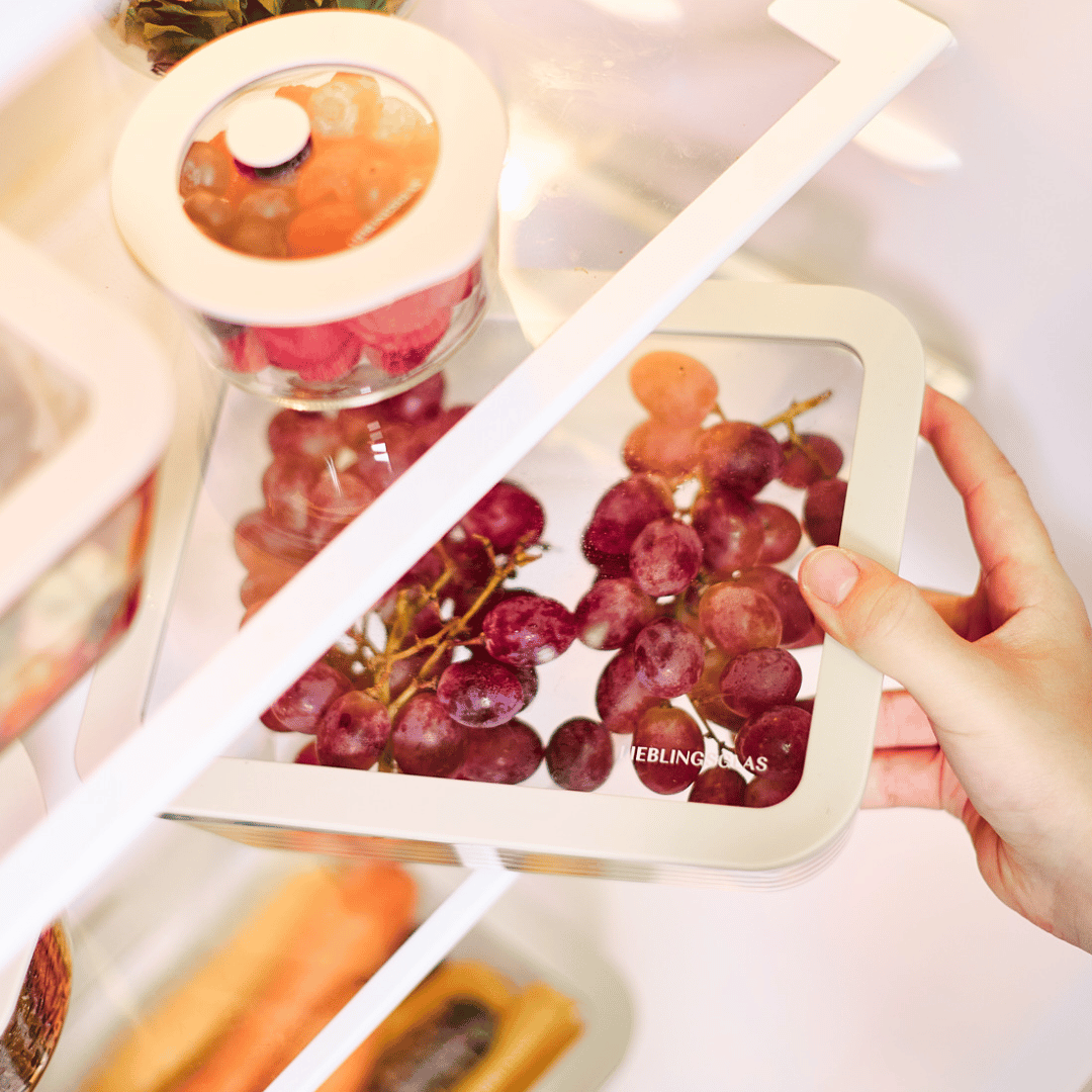 Unsere Frischhaltedosen machen Schluss mit matschigem Obst, labbrigem Salat und vergessenen Resten. Das integrierte Ventil drückt die überschüssige Luft raus – und hält wertvolle Nährstoffe, Textur und Geschmack länger im Glas. Mit unseren Frischhaltedosen bleiben deine Zutaten und dein Essen länger frisch – sichtbar, spürbar und clever aufbewahrt.