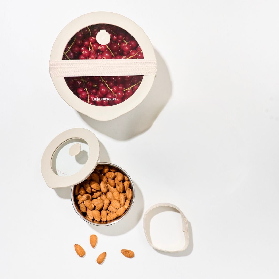 - Im Set enthalten: 2 Edelstahldosen (XS, M), 2 Glasdeckel & 2 To Go Straps